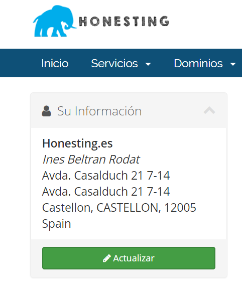 Tu cuenta queda registrada con los nuevos datos. Los próximos avisos de renovación, pedidos y facturas utilizarán los nuevos datos. No es posible modificar facturas ya emitidas.