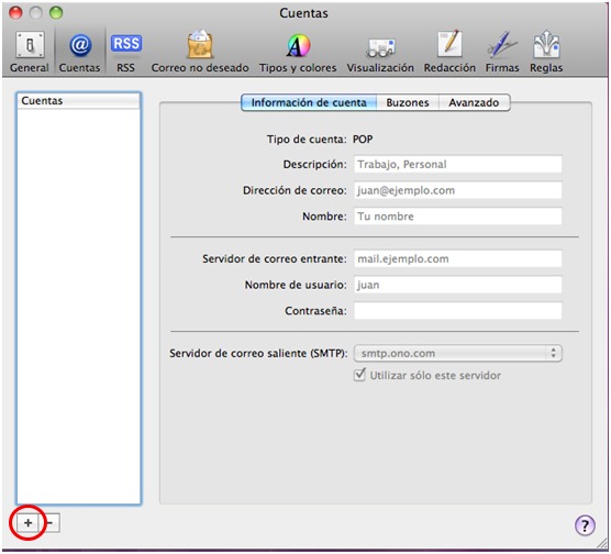 • Descripción: introducimos una descripción de la cuenta, por ejemplo la misma cuenta de correo.