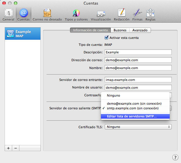 En esta pantalla hacemos clic en el servidor de correo saliente (SMTP), y seleccionar Editar la lista de servidores SMTP.