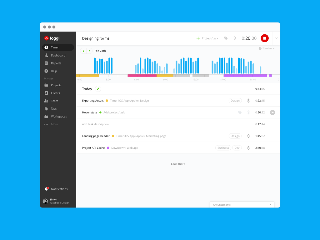 Si dedicas unos pocos segundos a organizar la información en proyectos, podrás generar informes detallados más adelante que te ayudará a saber el tiempo que necesitas para un trabajo en concreto.