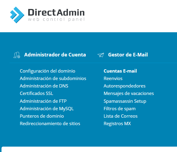 En el menú superior entra en Gestor de E-Mail > Cuentas de E-mail