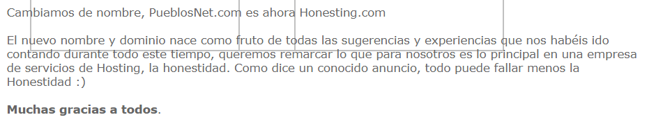 Así que tras probar muchas combinaciones, llegué al nombre actual: Honesting. La fusión de hosting (el principal servicio ofrecido) y honesto: el enfoque directo que quería darle. (Año 2004)