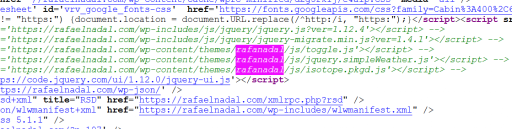 Pero al revisar con más detalle el código público de la página web, se puede ver fácilmente que está montada con WordPress y hace uso de una plantilla con algunas ligeras modificaciones.