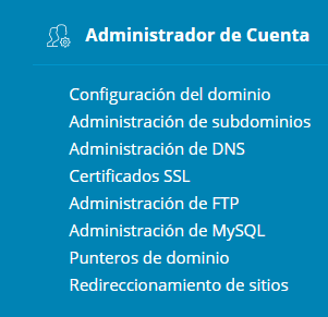 Entra el panel de control > Administrador de Cuenta > Administración de MySQL