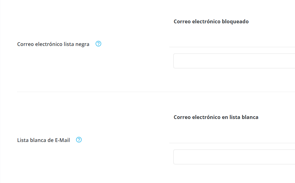 - Lista de emails bloqueados, para la lista negra.