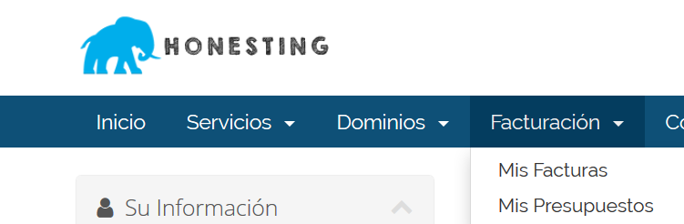Una vez dentro, el menú superior cambiará. Entra en Facturacion > Mis Facturas