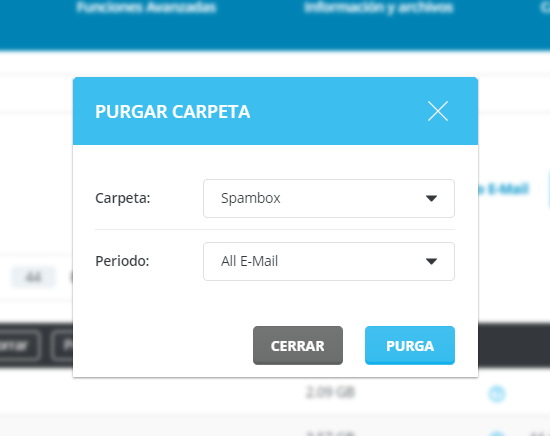 Selecciona la cuenta que quieras limpiar y haz click en el botón de Purga.