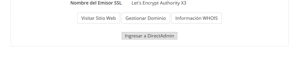Para entrar en el panel de control del hosting, puedes hacerlo de forma directa utilizando tudominio.com/config o entrando desde el menú Información General en Información y haciendo click en el botón inferior de Ingresar a DirectAdmin