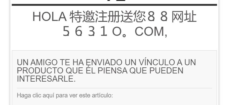 En lugar de indicar su nombre, ponía la dirección de la página web para la que estaba haciendo spam. Esto además, es lo que aparece destacado en un título grande en el email que se envía al amigo: