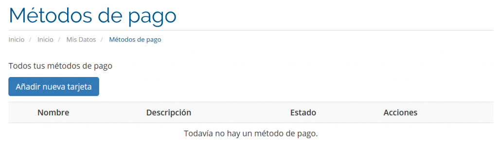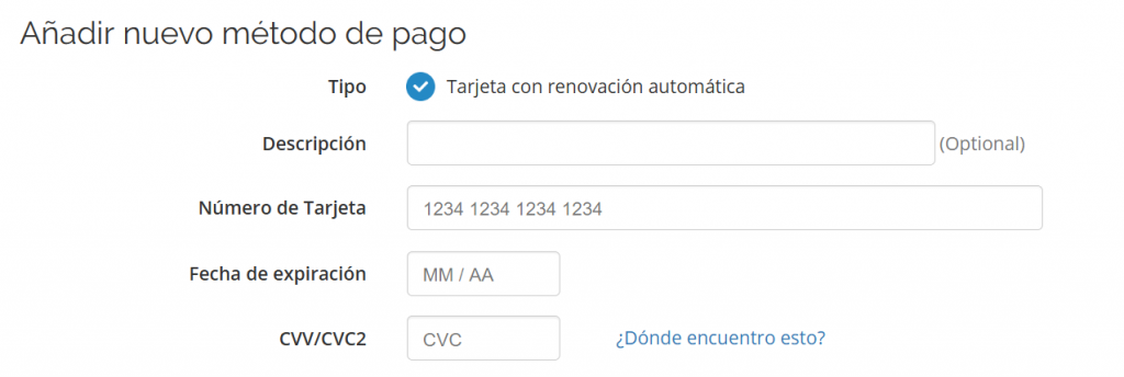 Haz click en Añadir nueva tarjeta, completa los datos de tu tarjeta y haz click en Guardar Cambios